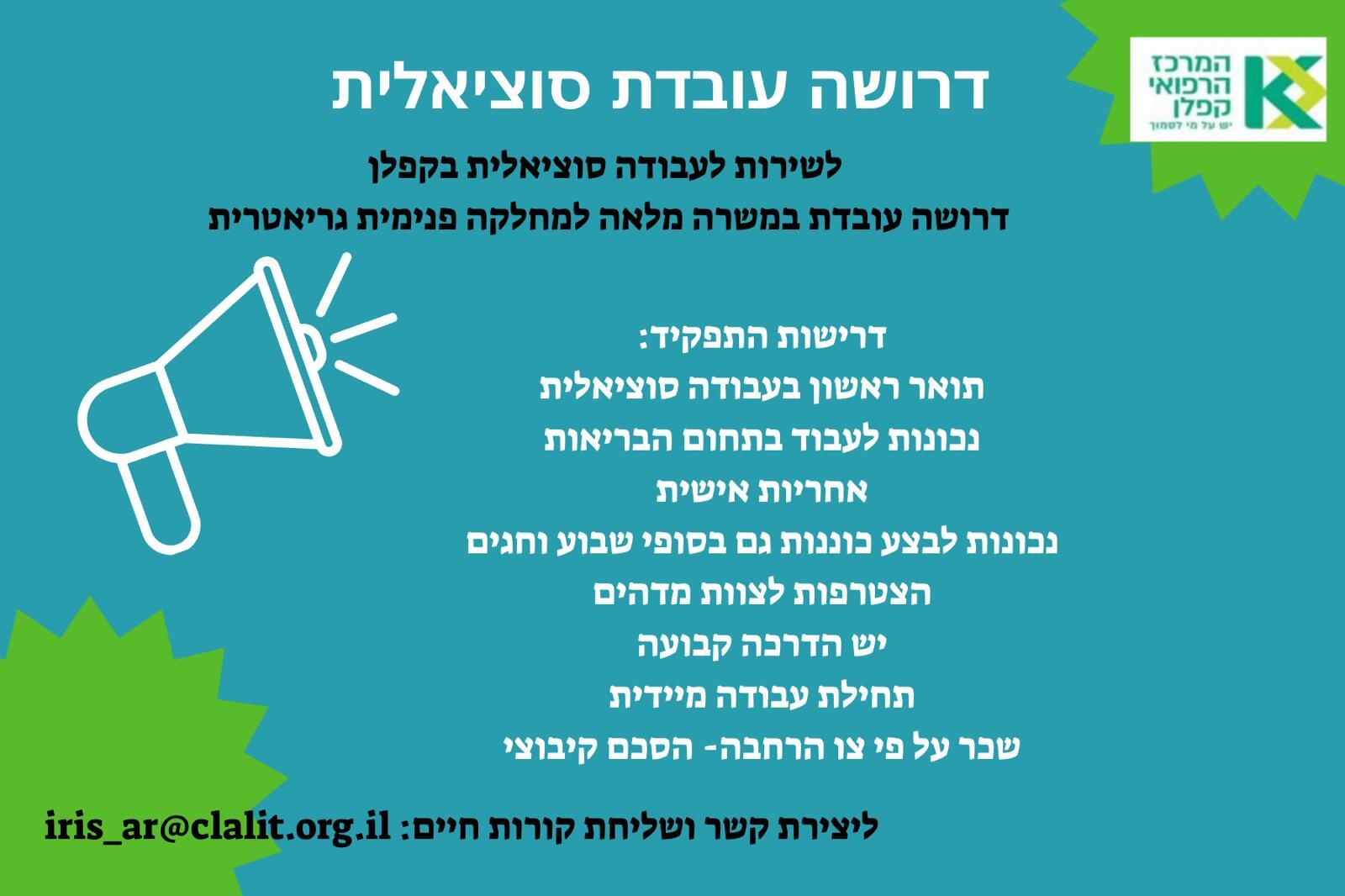 - דרוש/ה עוס תעסוקה מוגנת- החלפה לחל"ד.