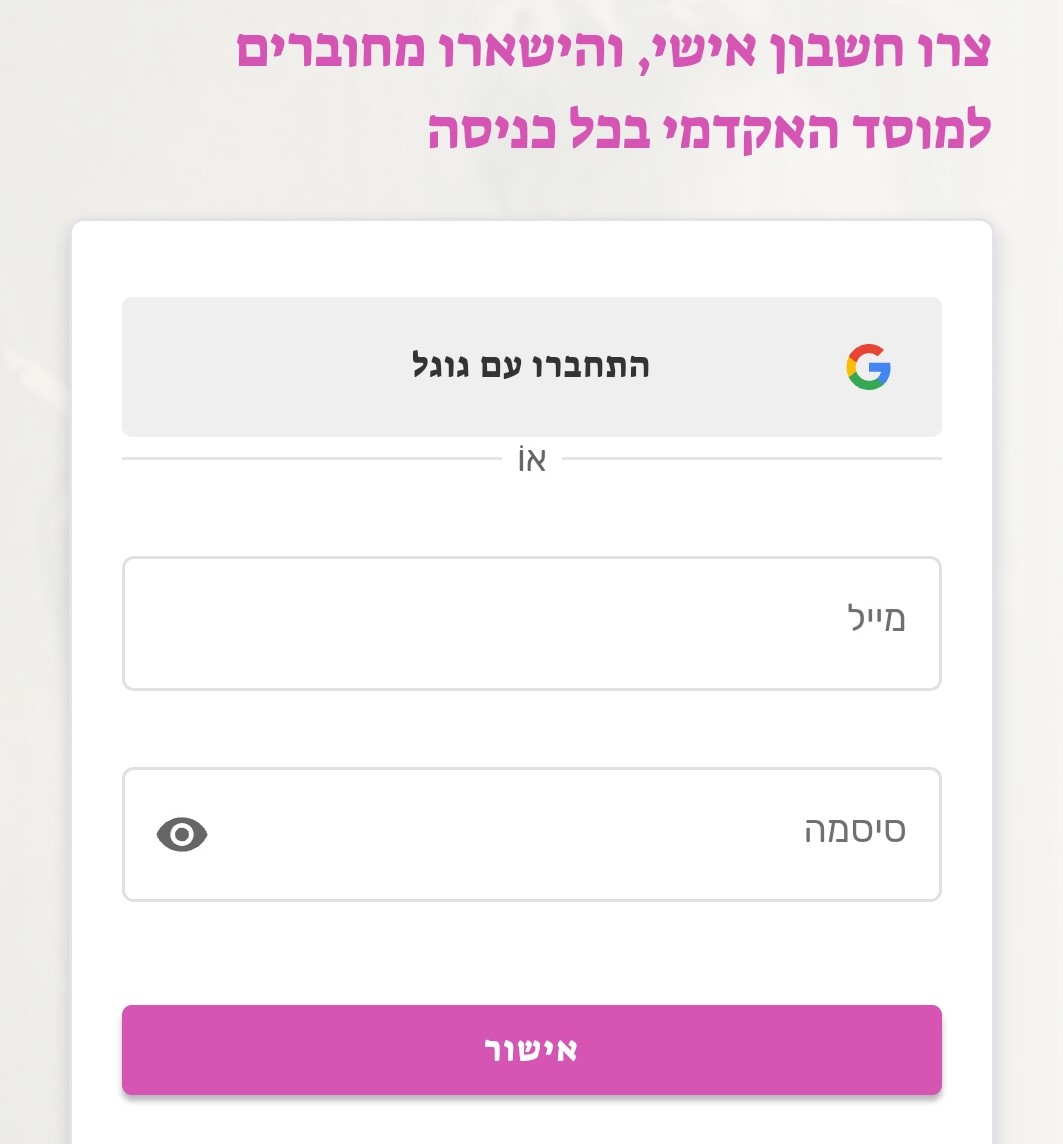 3. יצירת חשבון אישי – חוסכת את ההרשמה מחדש דרך המוסד בכל כניסה ומאפשרת לגשת לספרים האחרונים שקראתם ובהמשך גם לבנות אוספים אישיים. יצירת חשבון בפסיק מתבצעת באמצעות חשבון גוגל שתבחרו (אפשר להשתמש בכתובת האישית או האקדמית שלכם), או באמצעות הזדהות של מייל וסיסמה.
