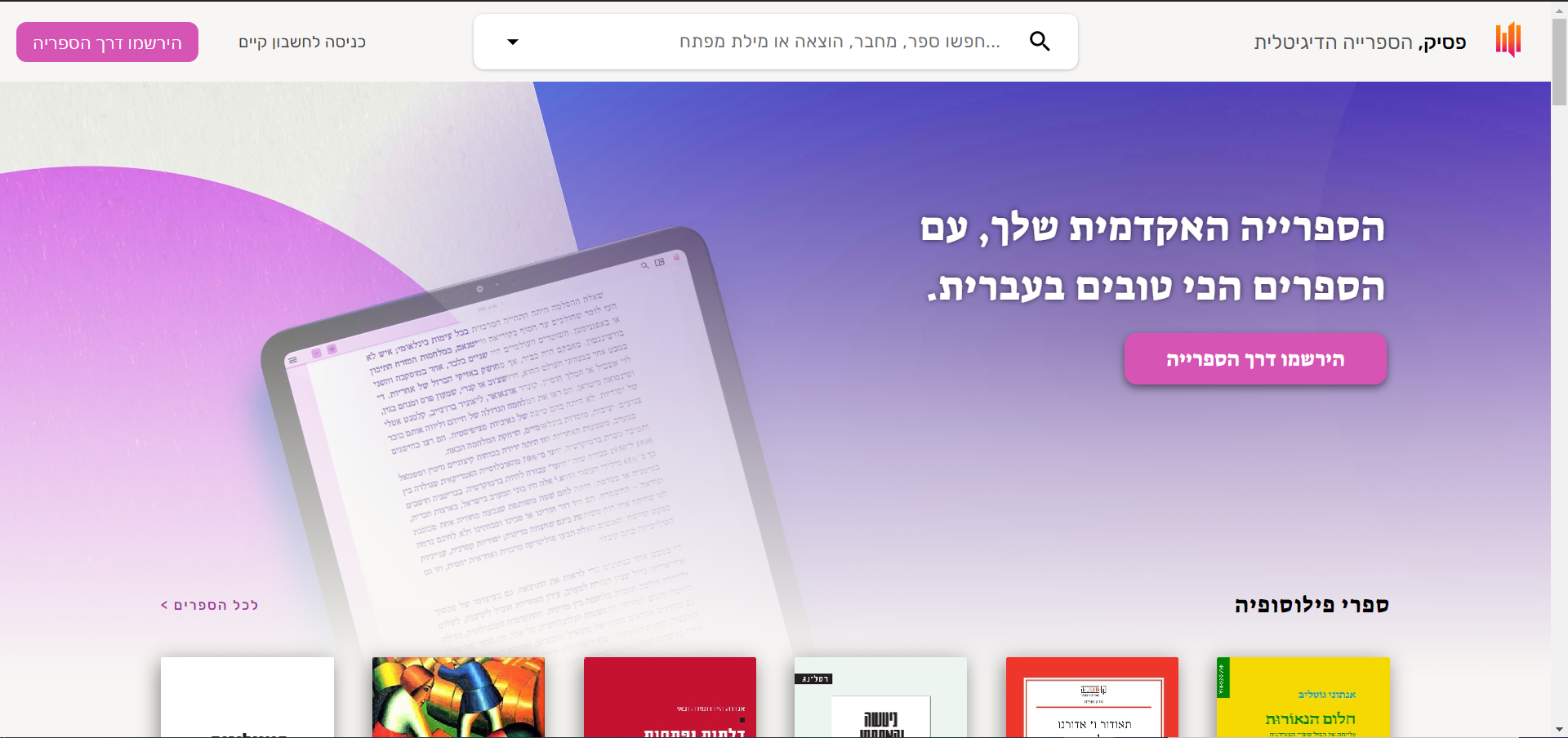 פסיק זהו מאגר ספרים דיגיטליים ממיטב ספרות המחקר האקדמי ומתחומי ידע שונים כגון: פילוסופיה, היסטוריה, ספרות, כלכלה ומנהל עסקים, חינוך, מדע וטכנולוגיה ועוד. הספרים קיימים בפורמט PDF ומוצאים לאור על ידי 15 מהמו"לים המובילים בישראל. כמו כן, יש נגישות מלאה בכל הפלטפורמות הקיימות – מחשבים, טלפונים וטאבלאטים.
