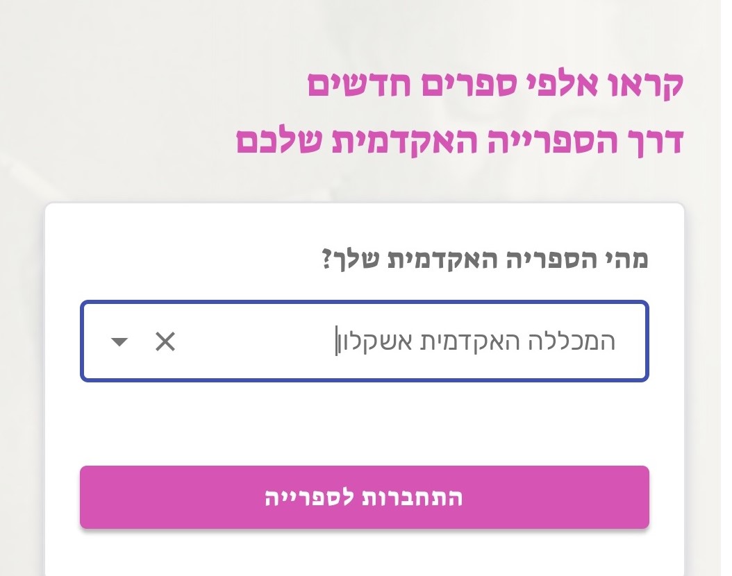 1. בעמוד ראשי יש ללחוץ על כפתור "הירשמו דרך הספרייה" במרכז העמוד או בפינה השמאלית העליונה.
